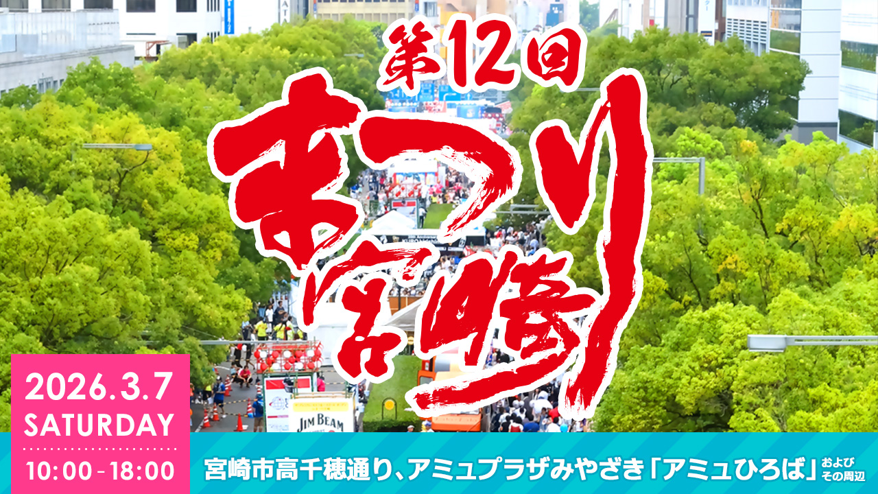 2026年3月7日(土)午前10時~午後6時開催場所:宮崎市高千穂通り、アミュプラザみやざき「アミュひろば」およびその周辺