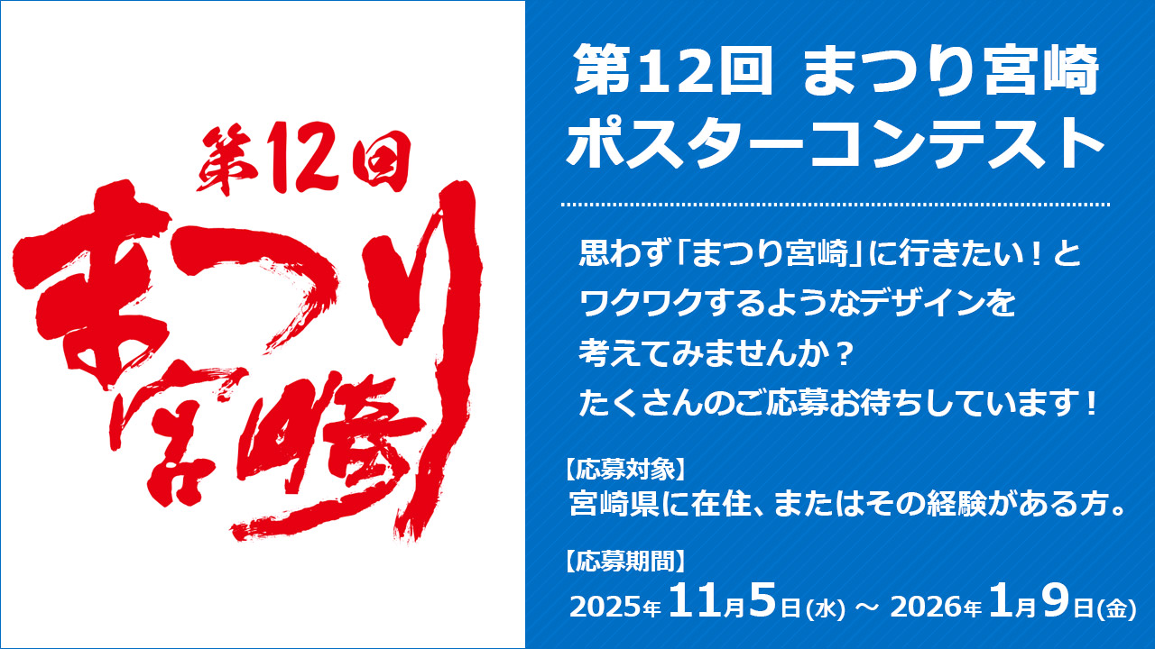 【応募対象】宮崎県に在住、またはその経験がある方。 【応募期間】2025年11月5日(水)~2026年1月9日(金) 当日消印有効